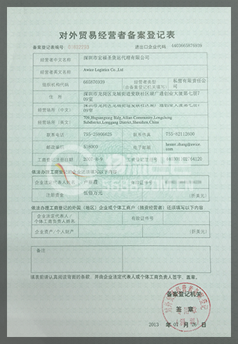 无船承运业务经营资格登记证